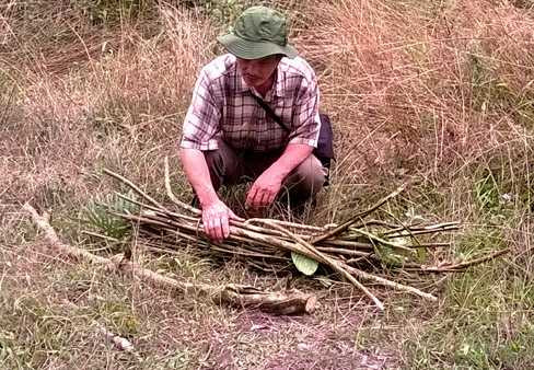 | Ông Lâm tự thu hái thảo dược trong rừng |