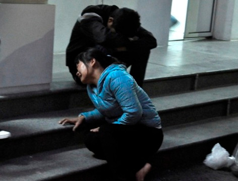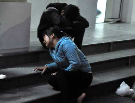 | Người nhà công nhân tử nạn đau xót trước cửa nhà xác bệnh viện. |