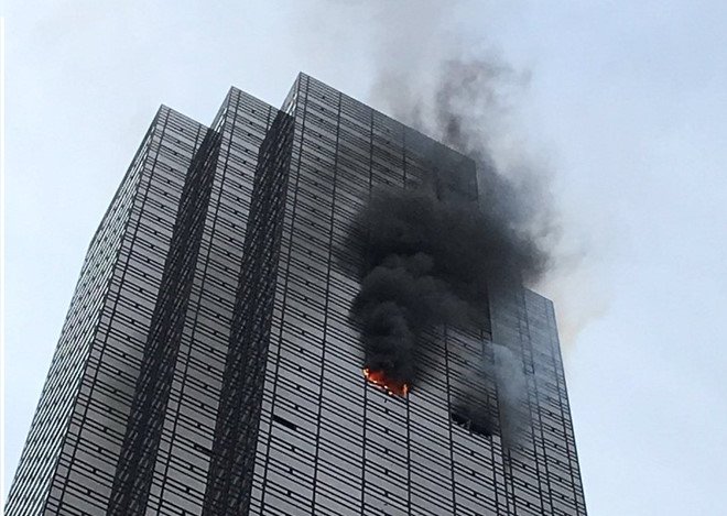 Theo BBC, Ngọn lửa và khói bốc lên nghi ngút trên tầng cao của Tháp Trump lúc 18h ngày 7/4 theo giờ địa phương. Khu vực xung quanh tòa nhà này được phong tỏa.