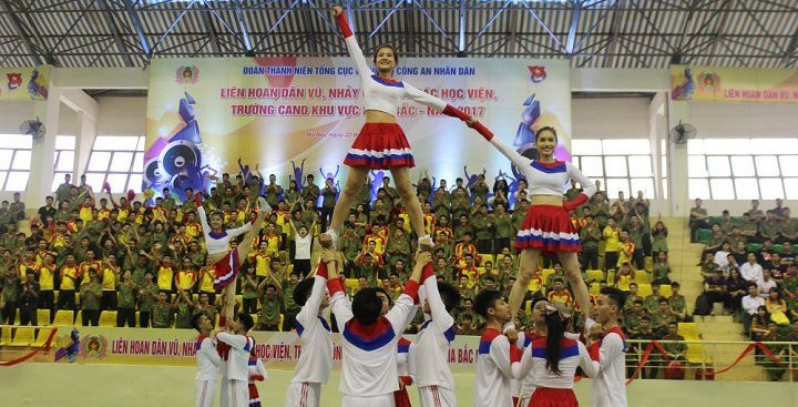 Năm nay, Liên hoan dân vũ, nhảy cổ động các học viện, trường công an nhân dân có sự góp mặt của 1.000 đoàn viên, sinh viên thuộc 10 trường học viện, đại học công an nhân dân khu vực phía Bắc.
