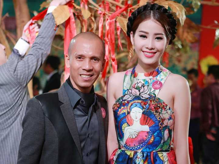 Hoa Khôi Nam Em chọn chiếc đầm cổ yếm với hoa văn độc đáo toát lên vẻ đẹp thanh tao khả ái. Với nét đẹp mong manh nhưng rạng rỡ, Nam Em được đông đảo khách quý có mặt xin chụp hình chung.