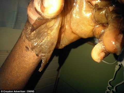 | Trước và sau khi Marian Adejokun bị lột da. |