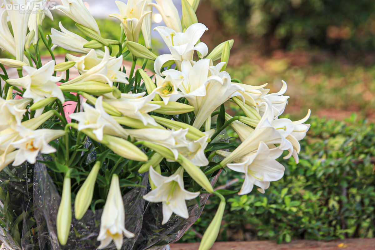 Những đóa hoa loa kèn không chỉ xuất hiện trong các cửa hàng hoa mà còn theo chân các gánh hàng rong đi khắp ngõ nhỏ.