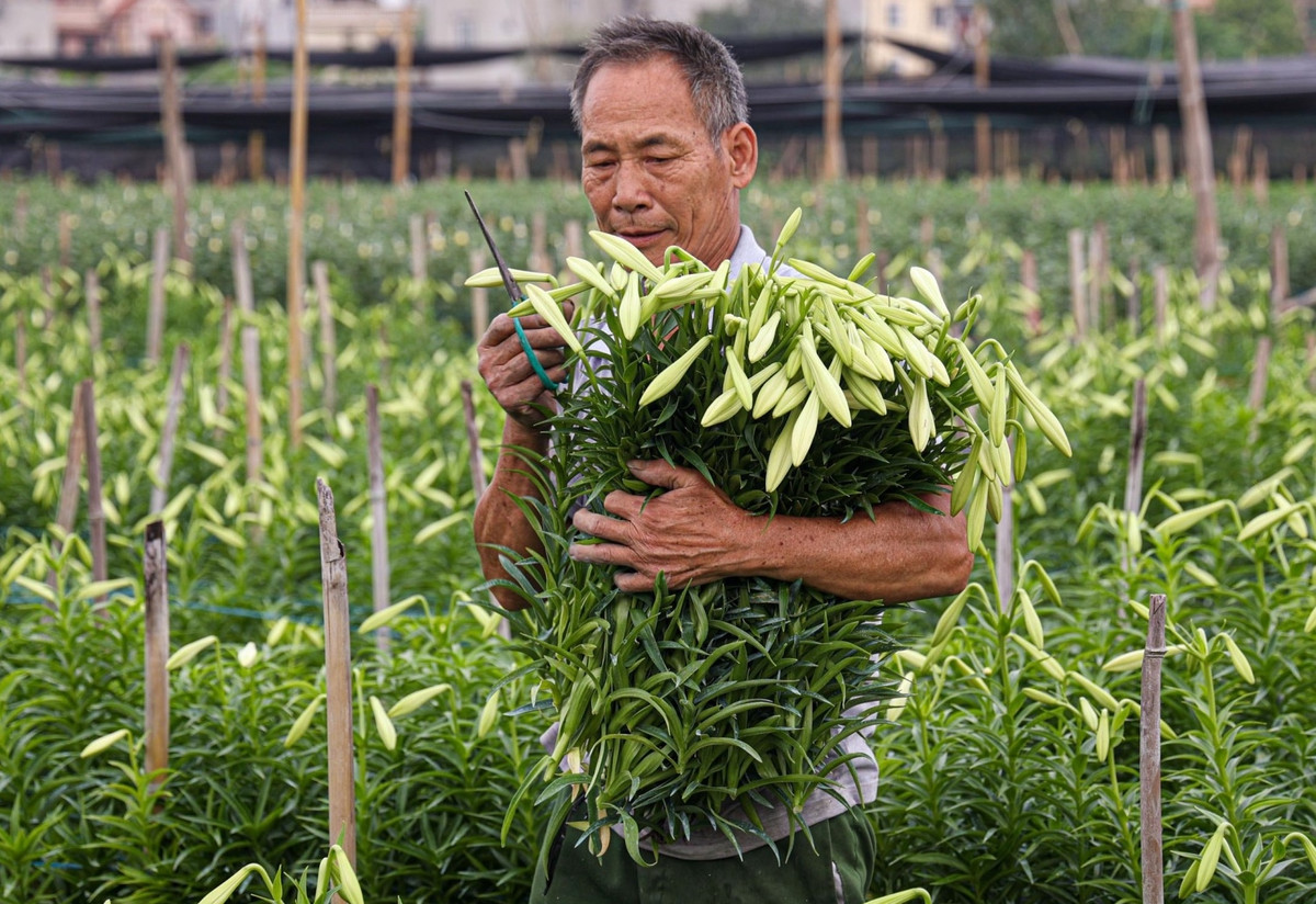 Theo ông Thanh, những nụ hoa đã chuyển từ màu xanh sang trắng, có kích thước lớn sẽ được người trồng thu hoạch trước. "Khi thu hoạch hoa loa kèn, người trồng hoa thường cắt gần gốc, để lại phần củ sinh trưởng, làm giống cho vụ sau", ông Thanh nói.