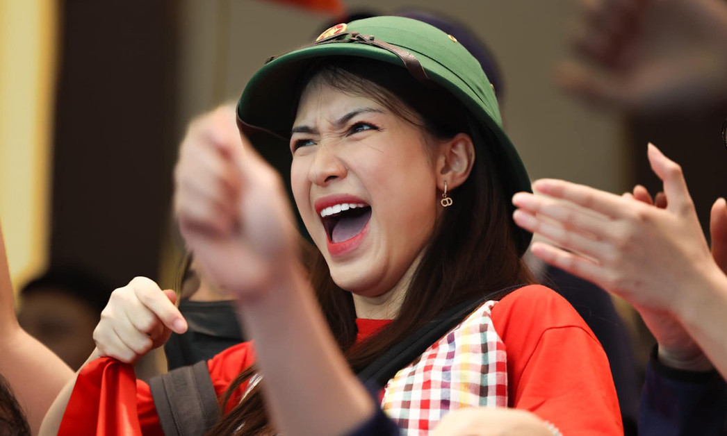 Sự góp mặt của nữ ca sĩ đã giúp những khán đài tại SEA Games 32 có nhiều màu sắc sinh động hơn. Cô nàng hài hước chia sẻ rằng bản thân may mắn khi học thanh nhạc nên mới có thể cổ vũ đội tuyển nước nhà bằng chất giọng to khỏe và âm vực cao.