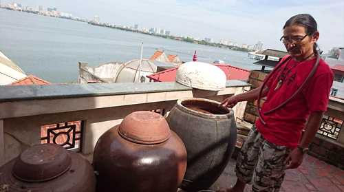 Họa sĩ Lê Đình Nguyên và những chum mắm trên sân thượng cạnh Hồ Tây