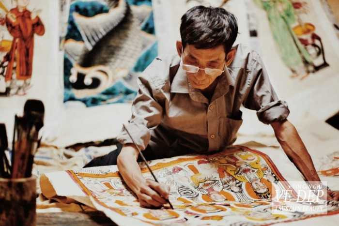 | Người cuối cùng làm tranh dân gian Hàng Trống (Ảnh: Việt Thanh) |