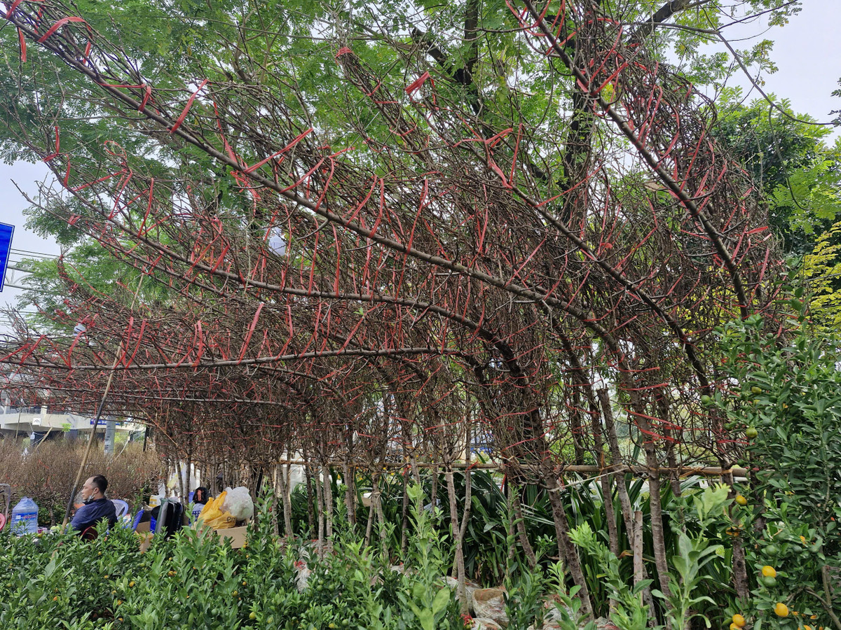 Đào về chợ Tết TP.HCM năm nay giảm hẳn so với các năm, giá những cành đào huyền này từ 7-9 triệu đồng. (Ảnh: H. Linh)