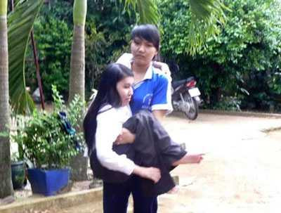 Thương chị bị bại liệt nên suốt 10 năm qua, cô học trò Hoàng thị Loan đã làm “đôi chân” cho chị gái Hoàng Thị An đến trường.