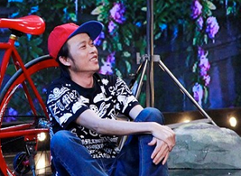 Danh hài Hoài Linh xuất hiện với hình ảnh chàng trai bán kẹo kéo hát rong trên đường phố đến giải cứu Hồng Tơ trong tập 5 chương trình 'Hội quán tiếu lâm'.
