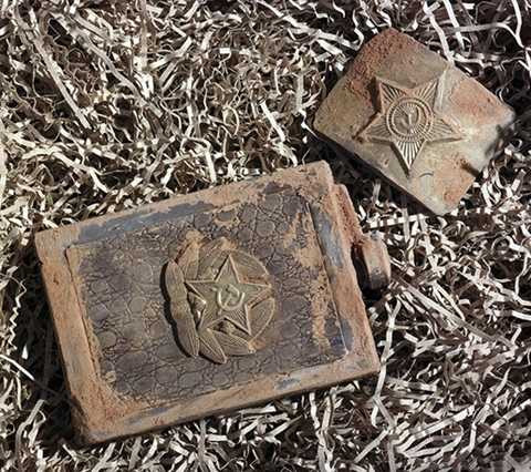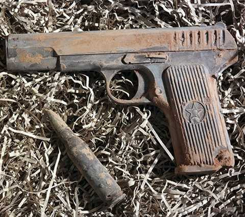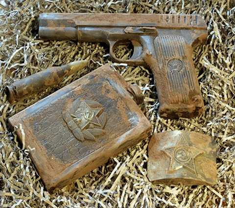 | Súng ngắn K54, bật lửa và mặt dây lưng có huy hiệu Xô Viết |