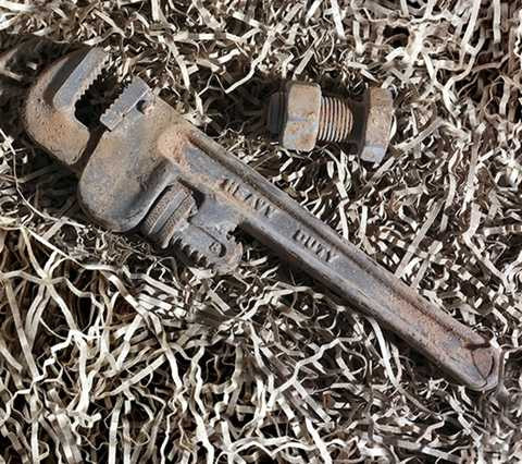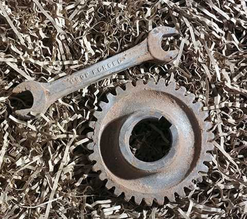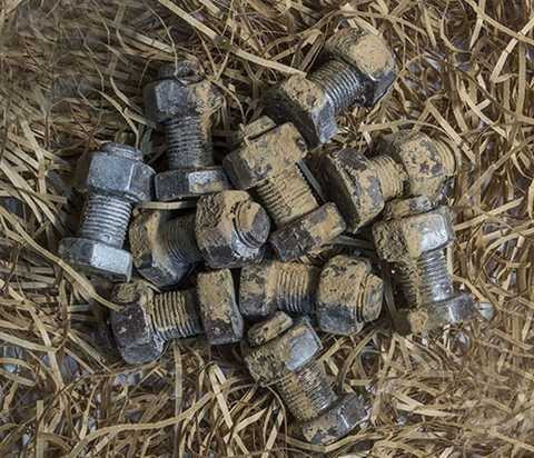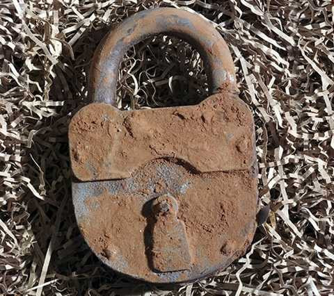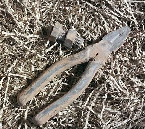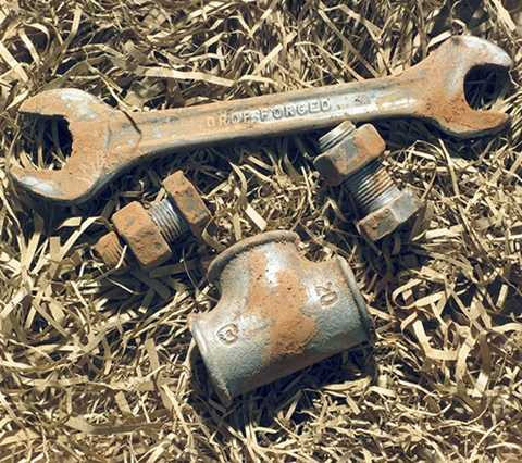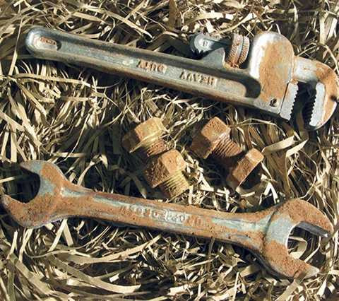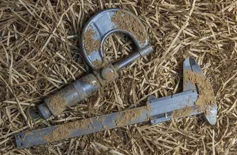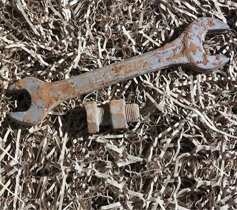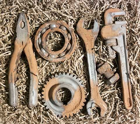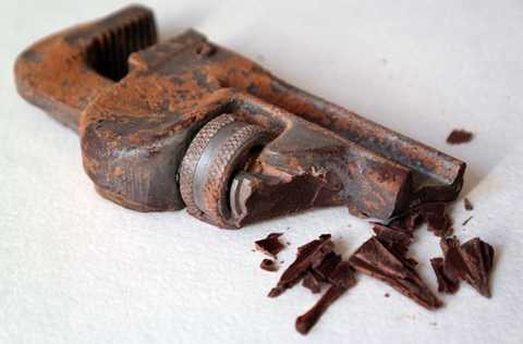 Súng, đạn, ổ khóa, bu lông, cờ lê, mỏ lết và nhiều nhiều thứ khác rỉ sét, trong thực tế là các thanh sô cô la ở kích thước như thật và màu nâu gỉ là một loại bột sô cô la.