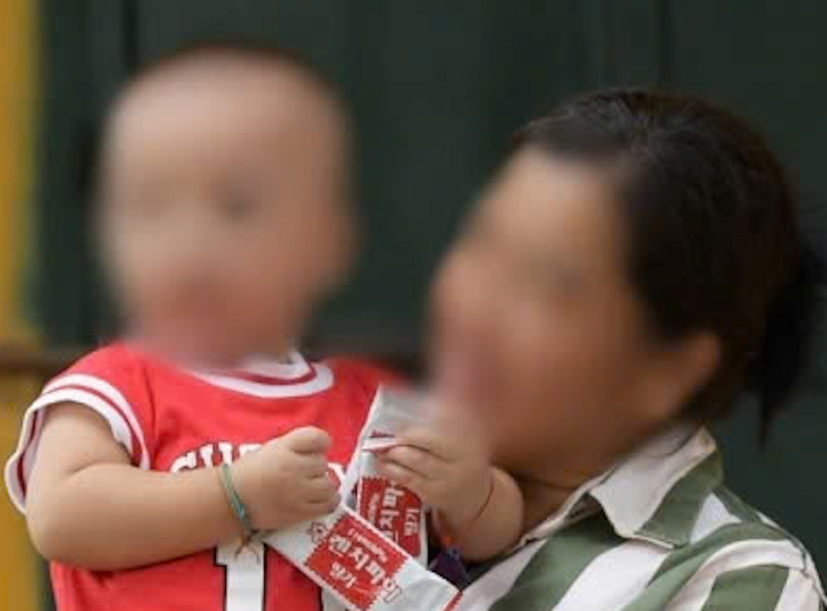 Già Hơ Nàng May ôm bé Minh trong trại giam Vĩnh Quang.
