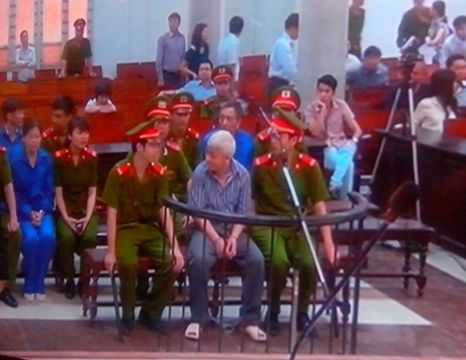 | Bầu Kiên và đồng phạm tại phiên tòa sáng 16/4. |
