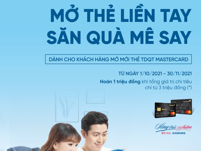 “Mở thẻ liền tay - Săn quà mê say” là chương trình khuyến mại (CTKM) dành tặng riêng cho các chủ thẻ TDQT VietinBank MasterCard Platinum Cashback và VietinBank MasterCard Premium Banking.