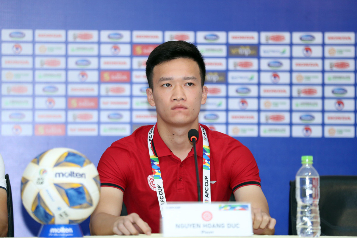 "Tôi sẽ ra sân với tinh thần cao nhất, mục tiêu cao nhất vượt qua vòng bảng. Tôi luôn có áp lực với mỗi trận đấu nhưng cũng biết cách gỡ bỏ áp lực. Trận ngày mai Đức sẽ ra sân với tinh thần quyết chiến cố gắng ghi bàn để kết thúc vòng bảng", Hoàng Đức khẳng định.