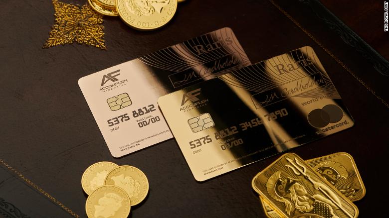 Thẻ tín dụng bằng vàng này là sản phẩm hợp tác giữa công ty chịu trách nhiệm đúc tiền cho nước Anh với Mastercard và công ty công nghệ thanh toán Accomplish Financial. (Ảnh: CNBC)