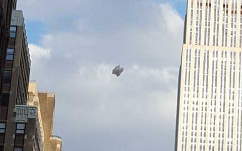 | Du khách đã vô cùng ngỡ ngàng khi thấy hình ảnh vật thể bay xuất hiện trên bầu trời trung tâm thành phố New York. Ảnh Dailymail |