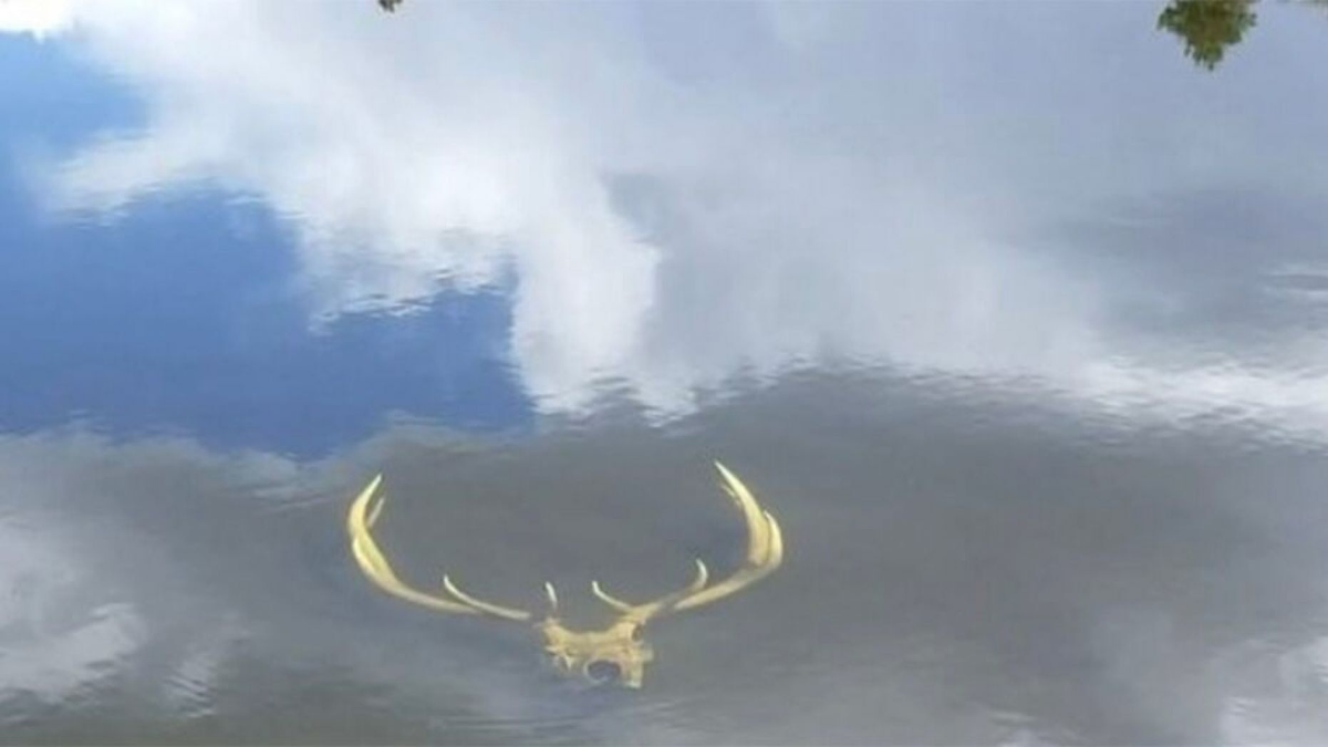 Hộp sọ của con nai được tìm thấy trong ao nước. (Ảnh: Facebook)