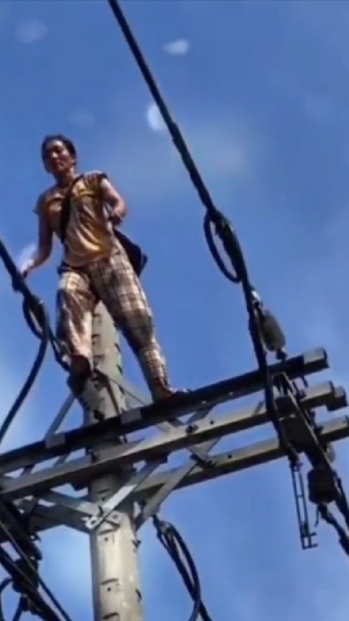 Hoảng hốt cảnh người phụ nữ đi trên dây điện, rơi xuống đất bất tỉnh