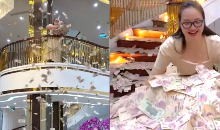 Đặc biệt, Hoàng Hường còn nhiều lần bày sẵn tiền trong nhà để quay clip bước đi trên những tờ tiền, gây phản ứng dữ dội.