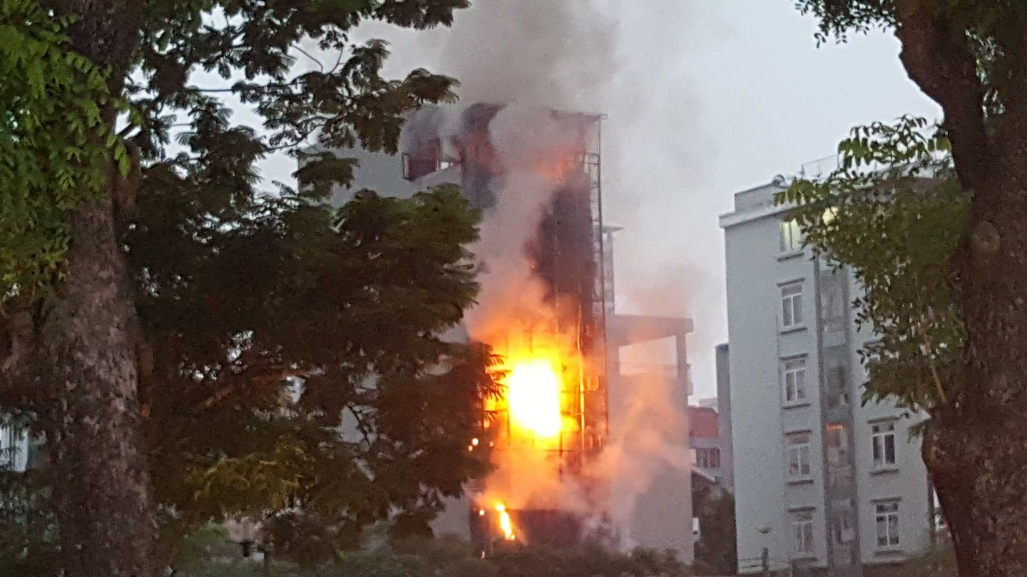 "Tôi đang đi trên đường Nguyễn Khang hướng về phía Nguyễn Ngọc Vũ thì thấy mọi người la hét, bỏ chạy ra từ một quán karaoke bên đường. Sau đó, lửa rất to và người dân xung quanh và tôi cũng nháo nhào quay đầu xe bỏ chạy", ông Trần Minh Thái - một người dân chứng kiến kể lại.