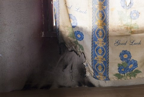 Rèm cửa bị cháy sém do bị bốc cháy.