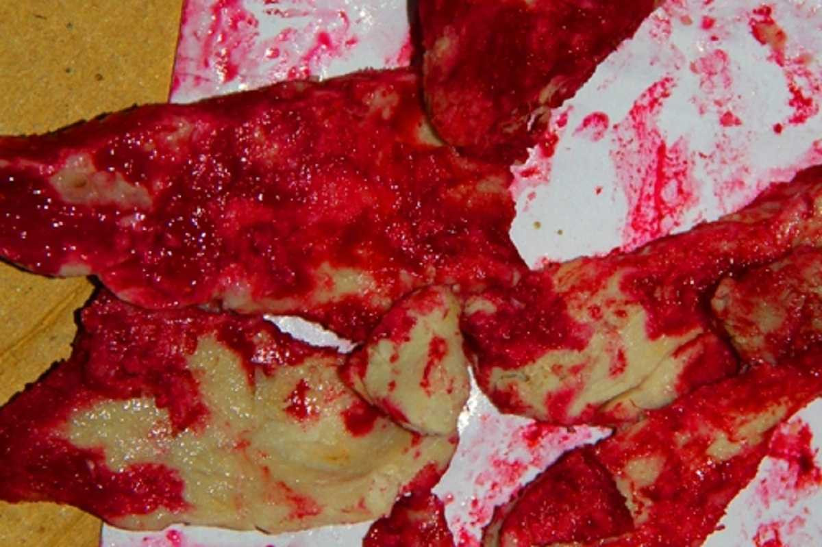 Đến sáng 21/3, bà Sâm đưa ra kiểm tra thì thấy cả xương lẫn thịt xuất hiện màu đỏ lạ.