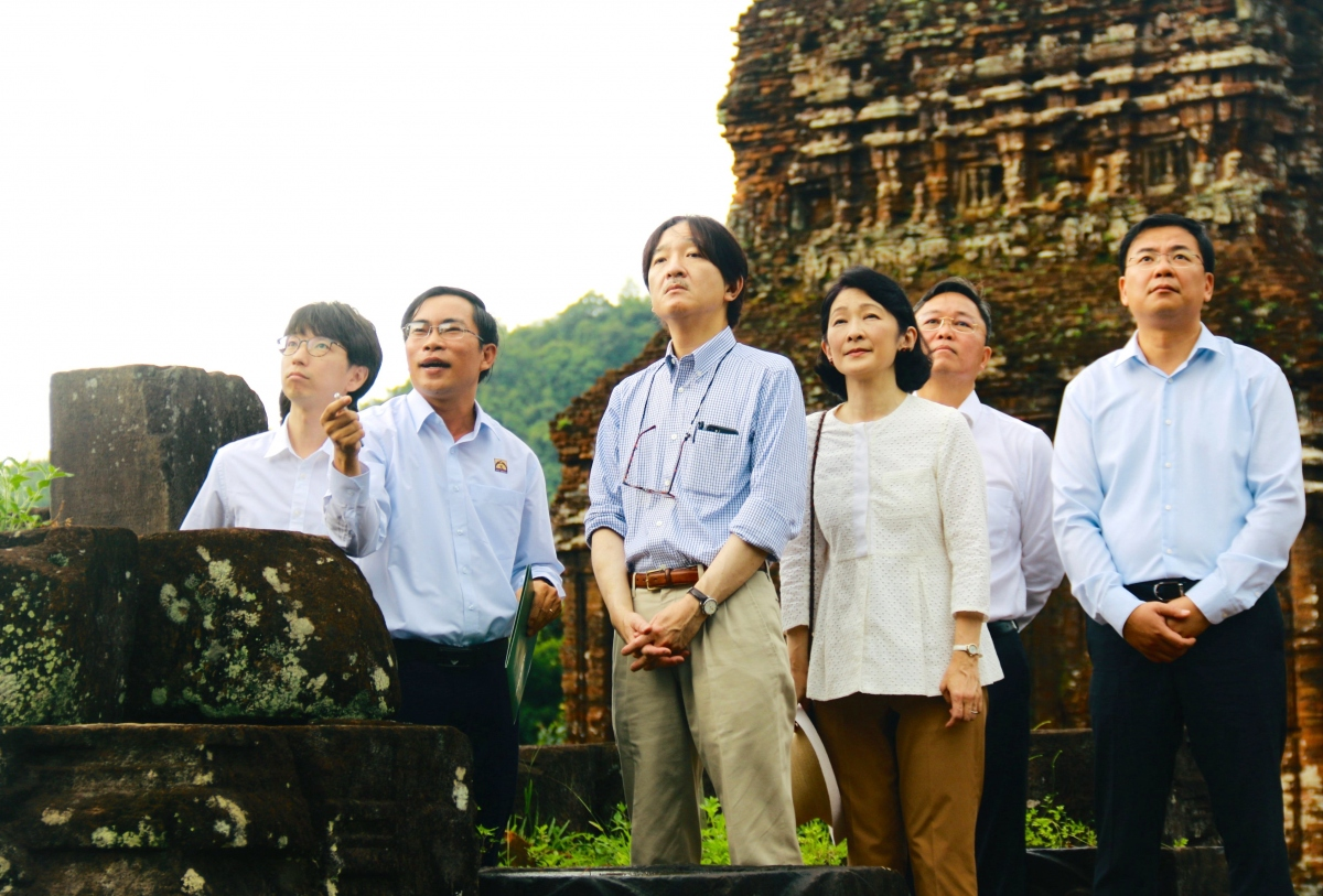 Đây là lần đầu tiên Hoàng Thái tử Nhật Bản Fumihito Akishino đến thăm Khu đền tháp Mỹ Sơn, tỉnh Quảng Nam.