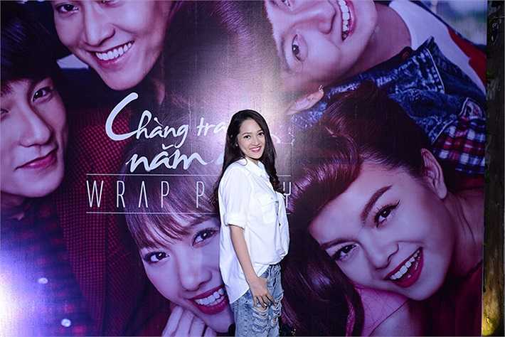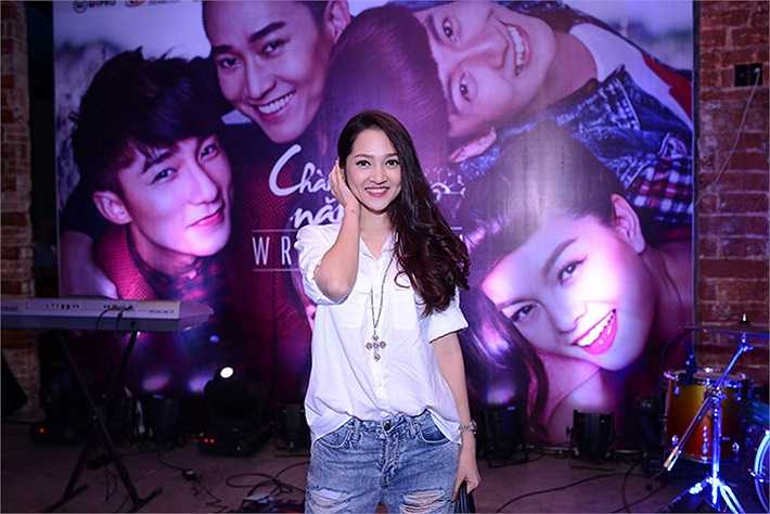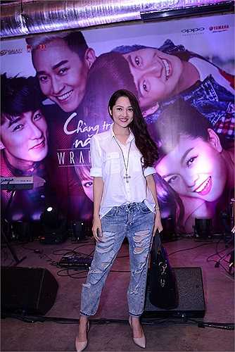 Hoàng Thùy Linh ăn mặc khá giản dị.