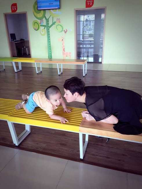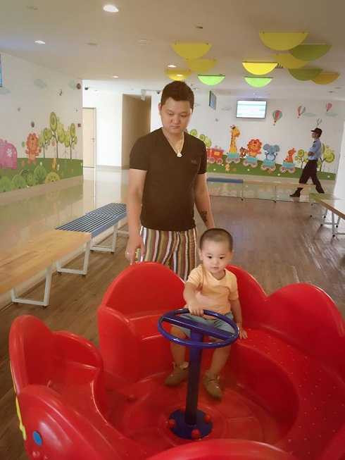 | Vợ chồng nữ ca sĩ Trà My vui chơi cùng con trai. |