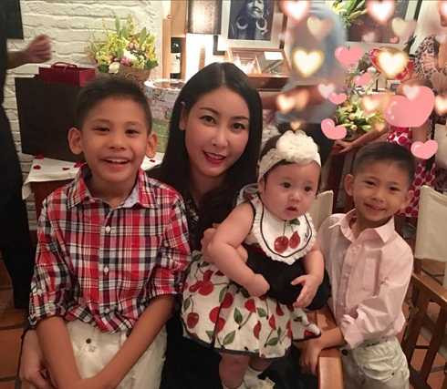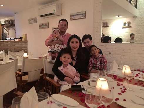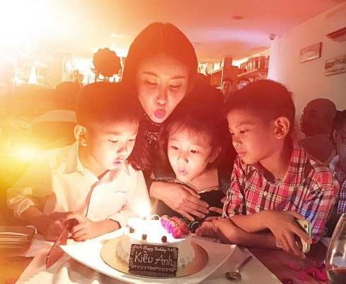| Hoa hậu Hà Kiều Anh hạnh phúc đón tuổi mới bên gia đình. |