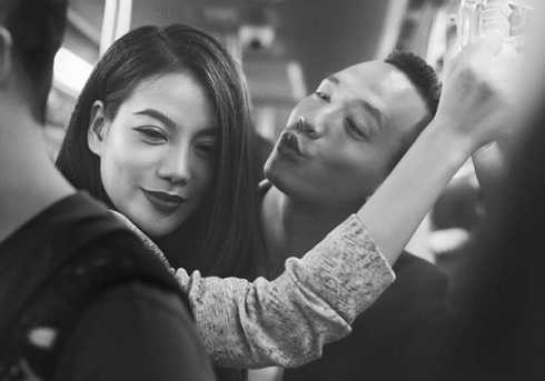 | Kim Lý tặng Trương Ngọc Ánh nụ hôn khi cả hai đang đi tàu điện ngầm ở Bắc Kinh. |