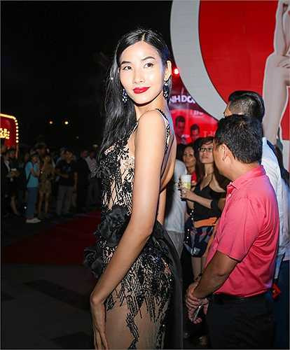 Hoàng Thuỳ gây chú ý với tất cả mọi người và khách mời khi diện một bộ váy xuyên thấu được NTK Hoàng Hải đặc biệt làm dành riêng cho cô.
