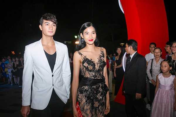 Trên thảm đỏ, Hoàng Thuỳ chụp ảnh cùng Mister Nguyễn Văn Sơn, anh chàng này đang có nhiều dự án quan trọng trong thời gian sắp tới, đặc biệt là dự án phim của đạo diễn Ấn Độ gốc Việt.