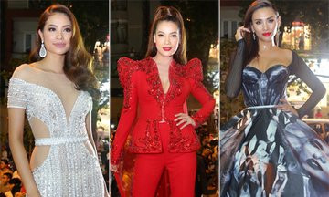Hoa hậu khoe chân dài và thân hình thon gọn với thiết kế đính đá sexy.