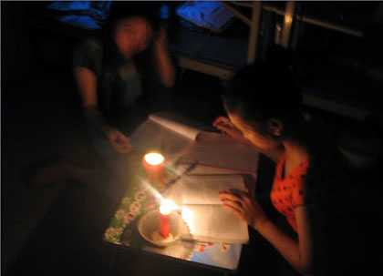 Chưa biết khi nào mới có điện trở lại, nhiều sinh viên phải ra hàng lang học, nhiều người sơ tán về nhà hay đến nhà bạn bè, họ hàng để tránh nóng. Khổ nhất là những SV ở xa, không có người chỗ bên ngoài để nhờ vả, đành ở lại để chống chọi với căn phòng không điện, không ánh sáng, không quạt, tivi. Quạt giấy và nước ngâm chân giúp họ giải nhiệt để tiếp tục chờ đợi đến khi có điện...