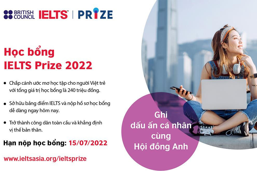 Hội đồng Anh, tổ chức văn hóa và giáo dục quốc tế của Vương quốc Anh chính thức công bố mở cổng đăng ký cho học bổng IELTS Prize 2022 từ nay đến hết ngày 15/7/2022.