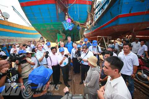 Chiều 21/6, các học giả, các nhà nghiên cứu tham dự “Hội thảo Hoàng Sa - Trường Sa: Sự thật lịch sử” đã có chuyến thực địa, tham quan tàu cá ĐNa 90152 của ngư dân Đà Nẵng bị Trung Quốc đâm chìm.