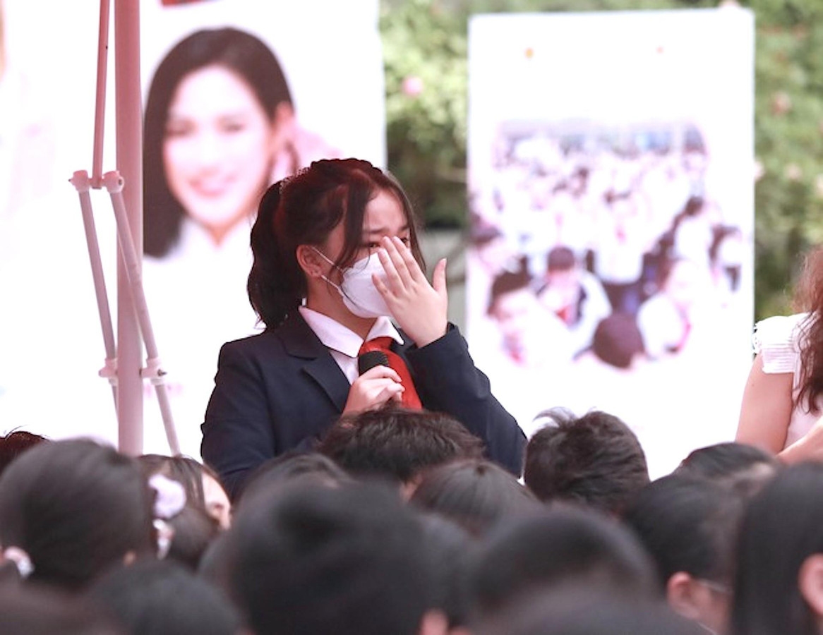 Tại diễn đàn "Điều em muốn nói" do Hội đồng đội Trung ương phối hợp với các đơn vị tổ chức sáng nay (17/5), nữ sinh P.T.K.A, trường THCS Giảng Võ (Ba Đình, Hà Nội) bật khóc khi chia sẻ về những áp lực học tập bản thân từng chịu đựng.