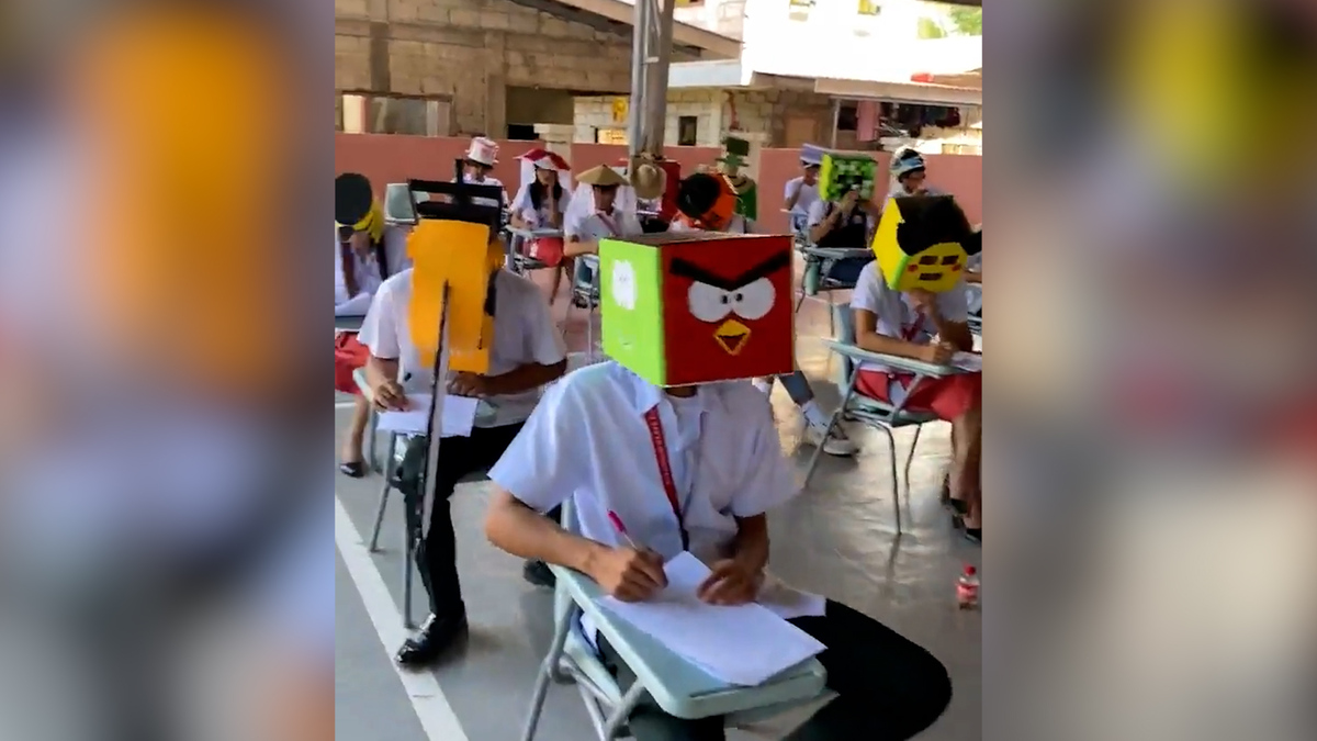 Học sinh đội mũ hình thù vui nhộn chống gian lận trong kỳ thi ở Philippines