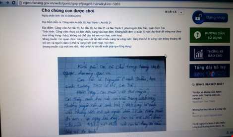 Bức thư này được Quân viết ra giấy kẻ ô-li, sau đó chụp ảnh lại và dùng email gửi về mục góp ý của trang web egov.danang.gov.vn.