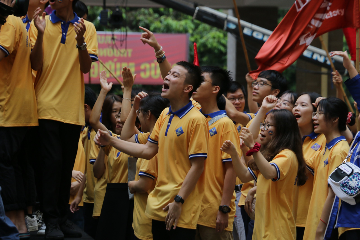Không khí sôi động tại trường THPT chuyên Đại học Sư phạm Hà Nội.