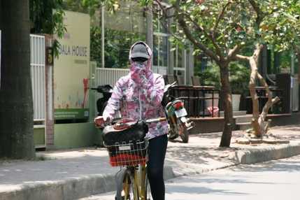 Hình ảnh học sinh Thủ đô chống chọi với cái nắng trên 40 độ C.