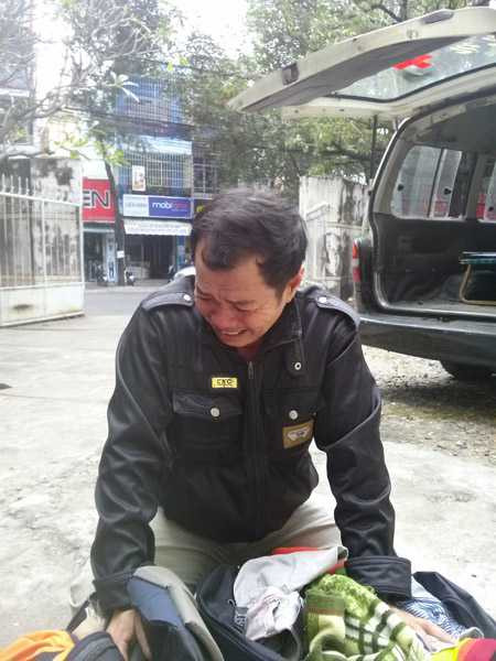 | Ông Tu Ngọc Hoài, ba của nạn nhân Tu Ngọc Thạch vừa về đến Bệnh viện tỉnh Khánh Hòa chứng kiến mổ khám nghiêm tử thi con trai. |