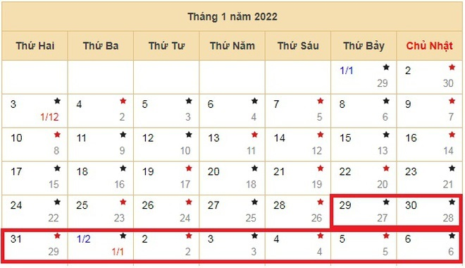 Học sinh sẽ nghỉ Tết từ 29/1/2022 (từ 27 tháng Chạp) đến hết ngày 6/2/2022 (mùng 6 tháng Giêng), tổng cộng 9 ngày. So với những năm trước, Tết Nguyên đán năm nay, học sinh các cấp được nghỉ ít ngày hơn (thường từ 11 - 16 ngày).