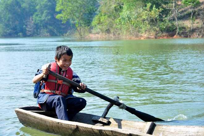 Nhiều đứa trẻ 8-9 tuổi bấp chấp thời tiết giá lạnh ngày ngày tự chèo thuyền trên mặt hồ sâu gần 100 mét đến trường (Theo Lao Động)