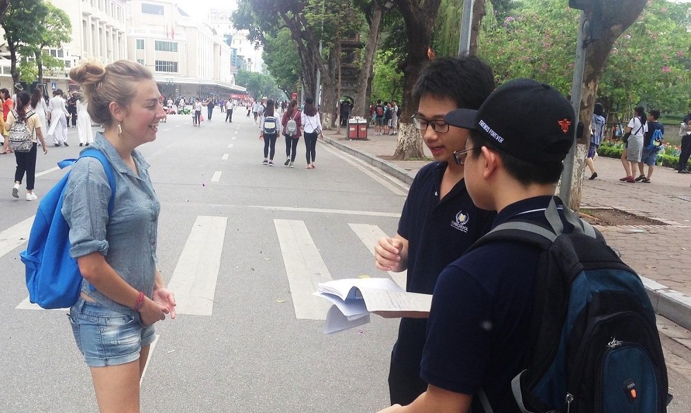 Nhóm của Tùng Khánh lên Hồ Gươm phỏng vấn nhiều du khách để tìm ra cách tiếp cận sáng tạo với môn Lịch sử
