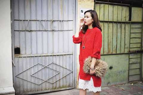 | Ca sĩ Lưu Hương Giang ngày một thời trang và luôn bắt kịp xu hướng. Cô đã bắt đầu chuyển trang phục sang màu đỏ, trắng, xanh để đón Giáng Sinh. Đầm layer len đỏ phủ ren trắng rất điệu đà và thanh lịch. |