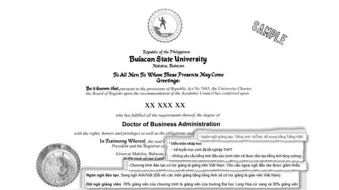 Trong vai một giảng viên ĐH có nhu cầu học tiến sĩ quản trị kinh doanh, chúng tôi đã liên hệ với Trường ĐH Ngoại thương (cơ sở TP.HCM) hỏi về chương trình tiến sĩ tại ĐH Bulacan State (Philippines). Nhân viên trung tâm tư vấn giáo dục quốc tế của ĐH này tư vấn: chương trình đã tuyển sinh rất nhiều khóa.